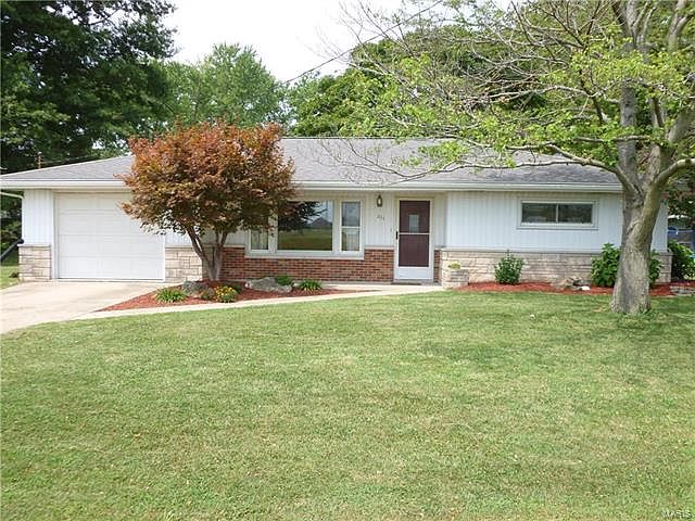 Cozy 2 bedroom 1 bathroom home located on a quiet street in Hamel. This 1,023 square foot home is located in the Edwardsville School District. New roof, gutters, and kitchen floor in 2018. Complete bathroom remodel in 2021, including new toilet, vanity, light fixtures, flooring, and bluetooth light/exhaust fan. New rock landscaping 2021. New ceiling fans and light fixtures 2021. Large eat-in kitchen with oak cabinets and plenty of counter space. Spacious living room with large picture window that allows lots of eastern morning sunshine to filter in. Master bedroom with 2 closets. Level backyard with 14' x 18' concrete patio. Finished garage with laundry appliances and heated floor. Extended driveway with ample parking for extra vehicles and boats. Refrigerator, oven, washer and dryer included. To schedule an appointment or for any questions, contact Dan at 618-550-8698.