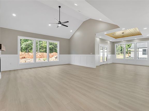 Modern fireplaceHigh-quality finishesCustom kitchenLarge islandSpacious half-acre lotFunctional open-concept layoutPrimary suite