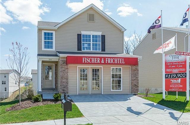 New Construction in Cimarron Forest by Fischer and Frichtel! This 1,480 square foot 2 story has 2 bedrooms, 1.5 baths and a large Loft area. Features include upgraded 42 inch cabinets, an open Kitchen-Living Room plan, washer, dryer, refrigerator, electric range, dishwasher, microwave, pantry, hardwood floors, walk in closet in both bedrooms, white 2 panel doors, satin nickel door hardware and lighting, Whirlpool stainless steel appliances, R 38 ceiling insulation, Trane energy efficient furnace and 13 SEER central AC, 25 year shingles, 2 car attached garage, partial brick elevation, vinyl siding, enclosed fascia-soffits, full basement, full yard sod, decorative mailbox, pest shield insect control system,10 year homeowners warranty and more. Enjoy the peaceful tree lined setting and wooded common ground in Cimarron Forest as well as the highly acclaimed Wentzville school district. There is easy access to Highways I-70, 40-64 and nearby Wentzville Parkway. This home is under construction and scheduled for a late May-early June completion.