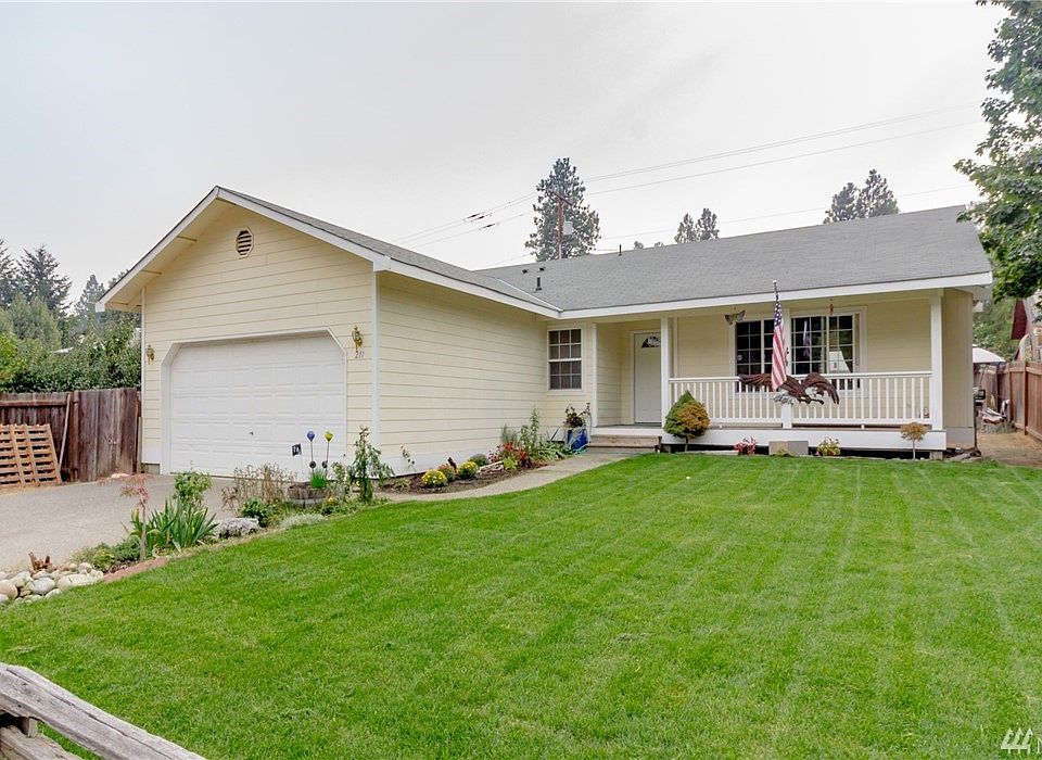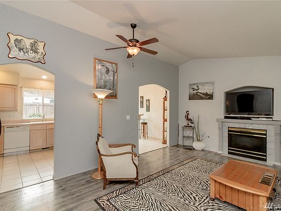 This charming rambler is definitely as home you should see. The interior has updates such a new hardwood and tile floors, new hot water tank, and a new landscaping installed. Not to mention a sprinkler sys for the beautiful new sod. This darling home has vaulted ceilings, and large windows to allow for lots of natural light. It is nestled at the end of a quite street, a great area for playing outside, or in the fully fenced back yard. Near the John Wayne trail for outdoor biking/hiking.
