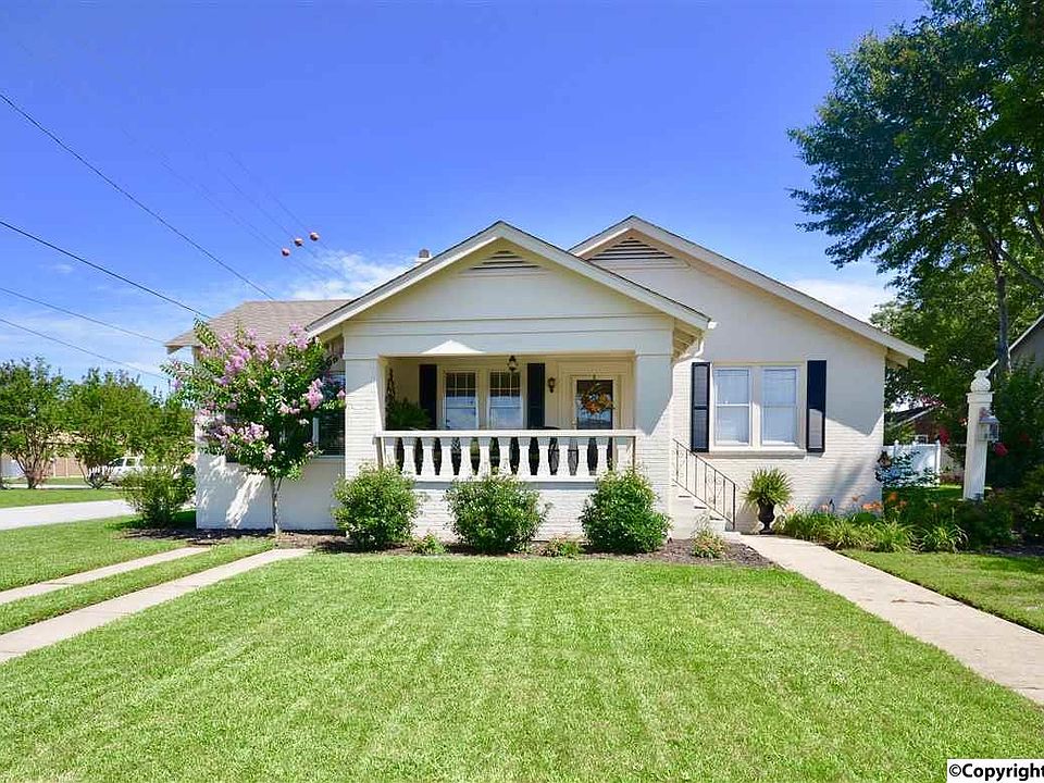 CHARM, DIGNITY, AND CHARACTER Best describe this 1930's Bungalow. This 3 bedroom, 2 bath home has been remodeled to keep all the charm of yesteryear yet updated for today's living. Home has front den with fireplace, sunny side living room, and a large dining room. The kitchen features island, quartz counter tops, and professional series stove. Large laundry room. BEAUTIFUL HARDWOODS! Outside you will find an oasis! Covered patio that overlooks saltwater octagon pool that features a covered Cabana. Detached garage has a pool restroom with changing area. Sip lemonade on the front porch and send your kids to the award winning Hartselle City Schools!