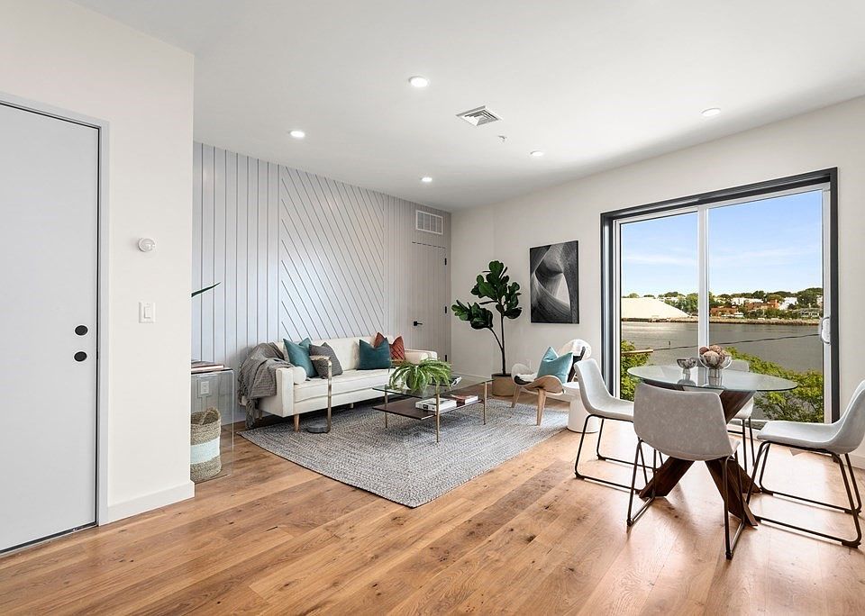 Experience the epitome of contemporary living in this exquisite residence located in the vibrant East Boston waterfront neighborhood. Nestled conveniently near a plethora of exceptional local dining options, public transportation, Downtown Boston, Logan Airport, and major highways, this newly constructed front-facing corner home in an elevator building seamlessly combines modern functionality with a sophisticated chic aesthetic. Boasting 2 bedrooms and 2 full bathrooms, this thoughtfully designed residence spans approximately 1,143 square feet of open-concept living space. The stunning kitchen is equipped with top-of-the-line appliances, custom cabinetry, an oversized peninsula, and polished stone countertops, overlooking the spacious living area. Additionally, the property includes one garage parking space and access to a common roof deck, providing a perfect space to unwind and enjoy panoramic views. Tenant is responsible for all utilities. First, Last, Security, and Broker fee due at signing. Prefer to lease 8-months to August 31st, 2025 - with the ability to release on an annual basis.