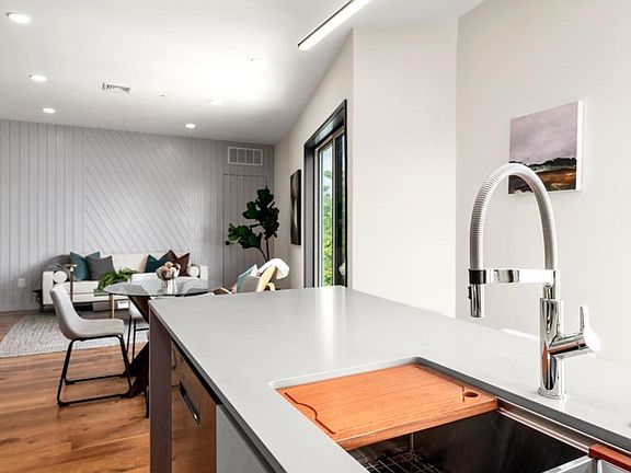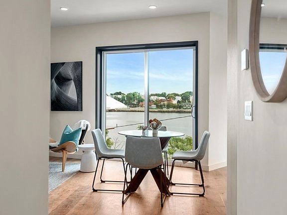 A stunning home in a thriving East Boston waterfront neighborhood convenient to an abundance of amazing local restaurants, public transportation, Downtown Boston, Logan Airport, and major highways. This recently constructed, front facing corner home in an elevator building boasts a seamless blend of modern functionality & sleek chic aesthetic. This 2 bedroom, 2 full bathroom offers approx. 990sf of thoughtfully designed, open concept living, including a beautiful kitchen equipped with top-of-the-line appliances, custom cabinetry, oversized peninsula, polished stone countertops and slate backsplash, which overlooks the spacious living area with private balcony. The primary suite is accompanied by a spa-inspired bathroom featuring a floating vanity & Calacatta marble inspired shower. The home is complete with ample closet space, custom lighting, oversized windows, hardwood floors, 1 garage parking space and common roof deck Rent Fee Includes: Water, Sewerage Disposal.