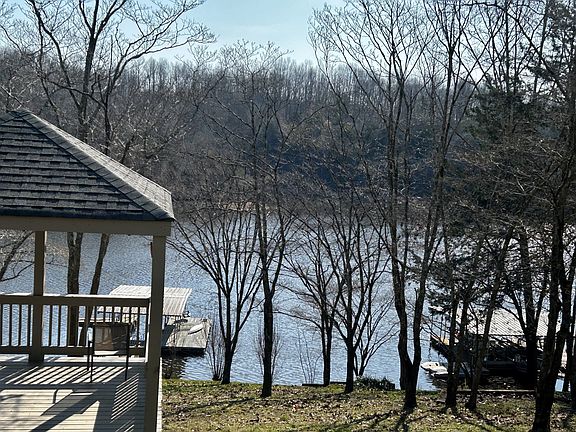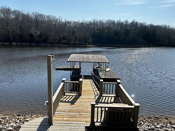 Beautiful brick Tim’s Ford lake house with a covered dock in the exclusive Ridgeville neighborhood. Situated in a deep large cove with year round water under dock looking across at TVA/ State Park property that will not be developed and obstruct your view of nature. Home features two full kitchens on the main level and on the lower level with two separate living rooms. The premiere bedroom is on main level with a private bathroom and walk-in closet. Main level has one bedroom and a office facing the lake that could be used as a 5th bedroom. Sun room on main level is overlooking the lake with lots of large windows. Downstairs area has its own full kitchen and large living room area with a covered porch and sun deck. Two bedrooms downstairs with a workshop and separate mechanical room. Gentle slope to lake with a gazebo halfway to enjoy the views of the lake. Dock is covered with a single slip and jet ski port. In a large cove in a no wake zone that is safe for swimmers and kayaks.