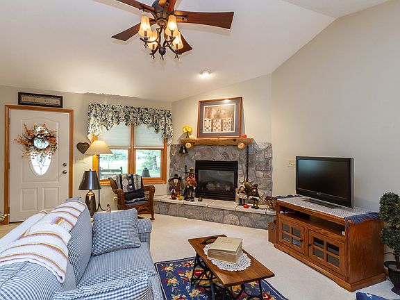 Own a piece of serenity minutes from Lost Lake! Enjoy this 4 bedroom 3 Bath ranch home either full time or as a home away from home in this private picturesque community. Walk into a cozy vaulted family room with a cobblestone gas log fireplace and Formal dining room just off the kitchen. Spacious kitchen boasts hardwood floors, brand new stainless appliances, and eating area that opens to a patio. Enjoy a master suite with walk-in closet and a luxurious master bath offering a double vanity, soaking tub, and seperate shower. 2nd large bedroom and convenient main level laundry. Be prepared to entertain in the finished basement with a large rec room area and dry bar well lit by numerous recessed lights. 2 additional bedrooms and full bath are also available for overnight guests or an in-law arrangement. Mature trees surround a gorgeous private yard with an adorable cobblestone patio and path to a gazebo. Enjoy the warmer months on West Beach of Lost Lake which is stocked for bass fishing available for residents, and experience wildlife. In the winter months - enjoy running your ATVs in the snow! Convenient to Lost Nation Golf Club, Short drive to Castle Rock State Park, White Pines State Park, Franklin Creek State Natural Area, Lowden State Park, and the Rock River. What more could you want?