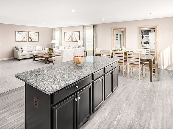 The Eden Cay single-family home with 3 bedrooms, 2 baths, 2 car garage, and full unfinished basement makes main-level living easy. Step into the inviting foyer and find a spacious open floor plan with an impressive great room, ideal for entertaining, and a gourmet kitchen with huge island and walk-in pantry. The Eden Cay also boasts two guest bedrooms and full bath. The generous owners' suite features a large en-suite bedroom with double bowl vanity sinks, walk in shower, and an extra wide walk in closet. The laundry room is conveniently located just steps from the opener's suite for easy access. Add a covered porch for extra outdoor living space. The Eden Cay is a can’t miss!