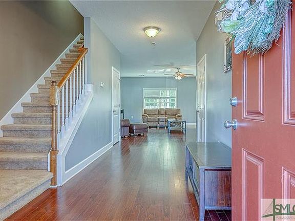 Beautiful "Seabrook" Plan in desirable Belmont Glen Community! Home is full of upgrades and custom touches! Downstairs has beautiful wooden floors, with open concept plan. Living room has a custom board and batten accent wall. The kitchen, complete with island and breakfast bar, has custom painted cabinets with corian countertops, as well as custom painted tile back splash in kitchen. All bedrooms are upstairs with large closets. Enjoy the low maintenance back yard and wooded view, privacy fence and covered patio. Storage building included!