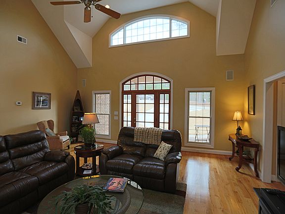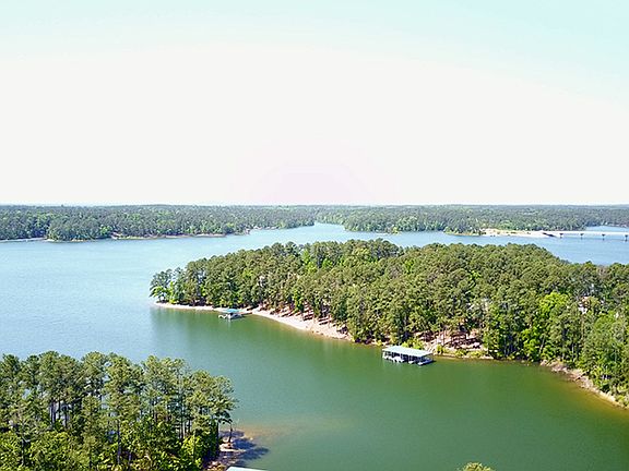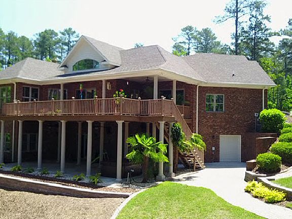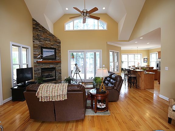 This waterfront home is stunning from the roadside however the inside is even more spectacular. With 17 foot vaulted ceiling and grand windows looking out to the water, this home is abundant with stunning views of the lake and outdoors. The floor to ceiling stack stone fireplace Is absolutely beautiful, but the owners took care not to obstruct the view of the lake by placing it as a corner gas fireplace. . The Red Oak hardwood floors add warmth and the wall of windows bring in natural light. Doors lead out to the fabulous deck that acts as a second living space overlooking the lake. What a view you have with vistas of the lake as well as the beautiful Pine Forest that surrounds our community. Your 24 foot covered dock is right out your backdoor with a cleared pathway right to it which is less then 200 feet away. The chef's kitchen is easy to get around in with plenty of granite countertops and custom made maple cabinets and hood. Stainless steel appliances give this kitchen a modern feel. There is even an area with a desk and drawers that match the cabinets of the kitchen. Of course all gourmet kitchens have soft close drawers as well as pull outs. With an island as well as an area to pull stools up to the bar, there is lots of room in this kitchen. From the built in oven to the custom hood range, to the views of the lake, you will want for nothing in this kitchen. There is a seperate area for a kitchen table as well that has a tremendous view of the lake. Your master bedroom is an ensuite, quite large and at one side of the home. There are sliding glass doors leading to your own private part of the deck and again with spectacular views of the lake. The bathroom is luxurious with a soaking tub as well as double vanities, a standalone tiled shower, and plenty of space. The walk-in closet also is very large with the washer and dryer right there. On the lower level of the home you will find a great mother-in-law suite or plenty of room for family and friends to stay. You will find a spacious family room, 2 bedrooms, full bath, office/exercise room, wet bar, fireplace and again views of the lake. One could even walk out the back door and have your own patio area here also. There is even a workshop, golf cart climate control storage in this area. The landscaping was created for ease of care as well as beauty. You will find brick pavers around this home, several retaining walls, beautiful trees and planings. This is a home worth looking at!
