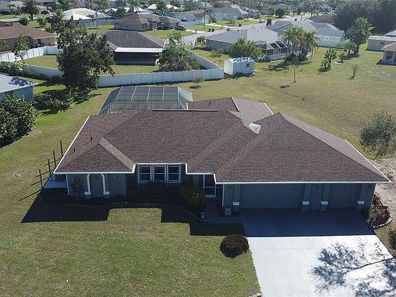 JUST REDUCED!!! Beautiful POOL HOME on over-sized corner lot in the desirable neighborhood of Amberwood Estates.This 3 BR/2 BA home sits on .42 acres, and offers 2007 sq feet of living area, plus a spacious lanai and screened pool deck area with an outdoor shower. Three-car garage has added work space with built-in work bench. City water and sewer; new roof in 2018, and a whole-house generator are attractive features. Kitchen has new Silestone Quartz countertops, and a convenient pass-thru window to lanai area. Master Bath has walk-in shower, guest bath has tub/shower combo. All bedrooms have walk-in closets. Sliders open onto the lanai from two living areas and the master suite. Manual hurricane shutters on all windows, and electric shutters on the lanai. New carpet in bedrooms, newer laminate flooring in the living areas, and tile in wet areas. Exterior has been freshly painted. This home has been lovingly maintained and is ready for a new owner to enjoy it’s many features. Call today for your private showing.