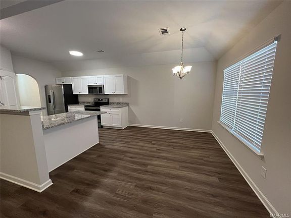 Available December 5, 2025. Built in 2023 with energy efficient windows, insulation, & HVAC which make your utility bills extremely low! This home is all electric! The living room is an open floor plan to the kitchen & breakfast nook making a perfect place for entertaining. Arched doorways are a beautiful feature throughout the whole house. Off the foyer is a dining room which leads to the kitchen. The kitchen features granite countertops complete with a breakfast bar, breakfast nook, stainless steel appliances, pantry, & recessed lights. The fireplace in the living room is a wood burning fireplace. Down the hall, you'll find all 4 bedrooms, bathrooms & the laundry room that leads into the garage. Both bathrooms feature granite countertops & recessed lights. The best part is TWO Walk-in Closets in the primary bedroom (one in the bedroom & one in the bathroom). Primary bathroom features a double vanity, separate shower & garden tub. Don't miss the privacy-fenced back yard where pets up to 25 pounds (with $25 pet fee per pet up to two pets) can play. Tenants are responsible for all yard maintenance (to include weeding flower beds, mowing, edging, weed-eating), pest control, air filters & utilities. NO SECTION 8 Allowed. (Pictures are from when the house was vacant.)