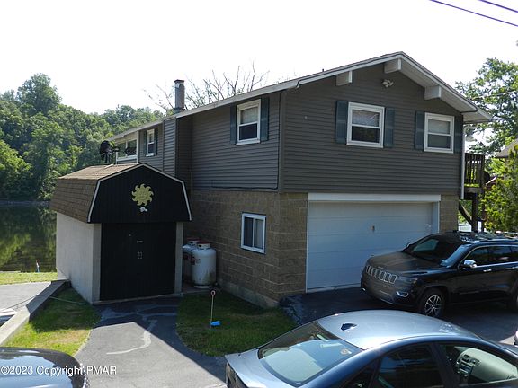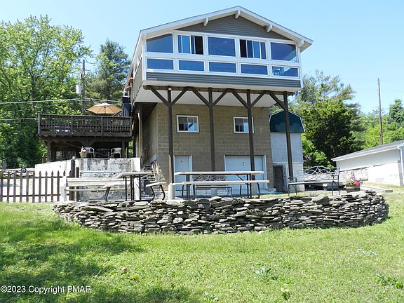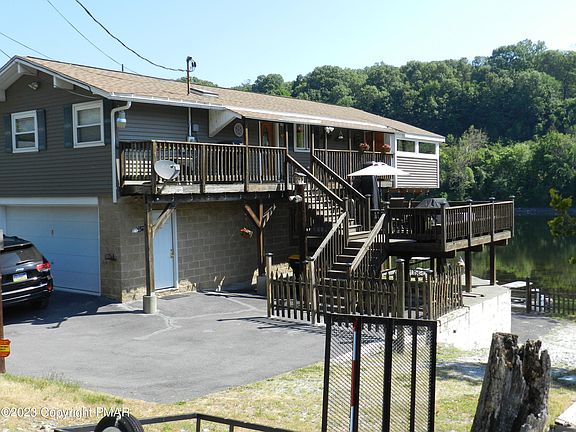 RIVERFRONT. Totally Remodeled WATERFRONT on the Delaware River. Ready to Move In. Boast Hardwood & Tile Floors, Cathedral Ceilings, Granite Counter Tops & Island, propane Fireplace, Solid Wood interior doors and Stainless-Steel Appliances. 25 X 12 Enclosed Porch with Granite Ledge on 3 sides overlooking the river. 3 Bedrooms, 2 Baths, 2 Car Garage, Full unfinished Walk Out basement and a 19 X 8 block shed with storage below it. 38 X 4 covered deck, 16 X 16 deck and cement patio ALL overlooking the river. Includes Floating dock put out seasonally. Area on River is conducive for Motor Sports. A RARE find. Minutes to Rt. 80 and NJ. Hurry!
