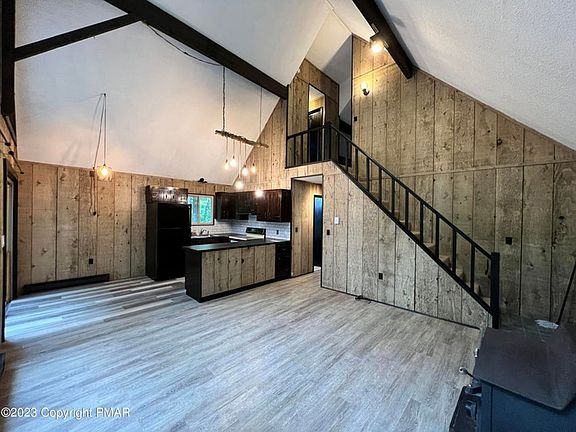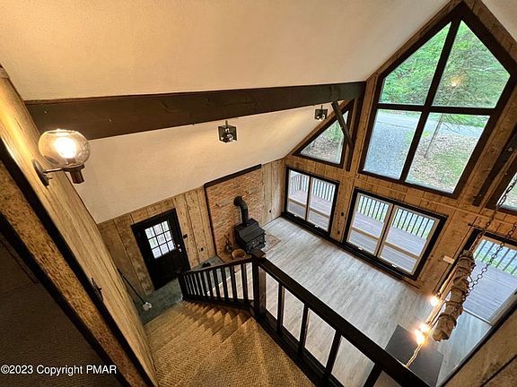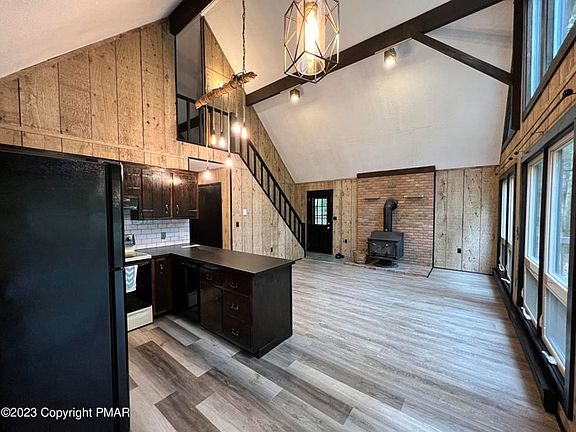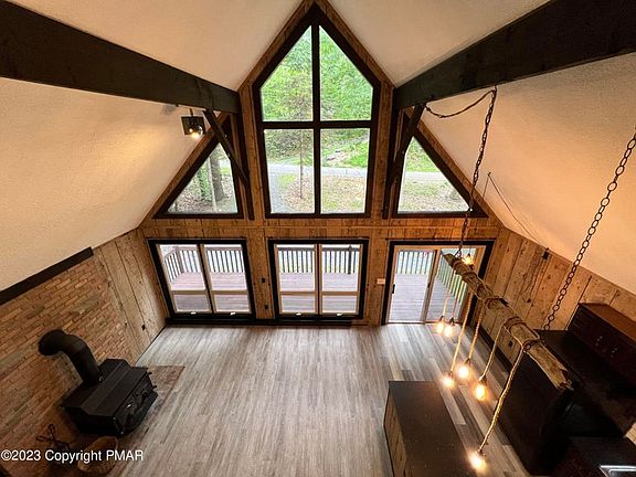 Renovated Cozy A-Frame Chalet offering 3 bedrooms, 1.5 bathrooms located in beautiful gated community at Saw Creek Estates. Some of the many community amenities include 6 swimming pools, Jacuzzis, tennis courts, ski trails that could be used all year around. Has a spacious living room with a large sized fire wood stove, an open concept kitchen with a dishwasher and laundry room with a washer and dryer. This lot backs up to over 800 acres of woods with a little stream running behind the house. Location is close to schools, parks, and shopping. The house has also been outfitted with some smart home devices, including: Smart thermostats, WiFi air conditioner and Wireless security cameras can all be accessed remotely. D-N-A Property Management Company PA License #: RB066393 Search All Available Properties For All Your Real Estate Needs!