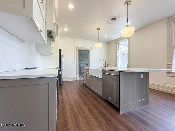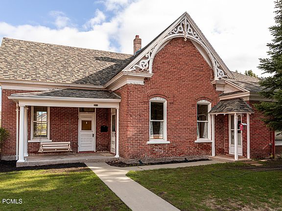 Step into a perfect blend of historic charm and modern luxury with this beautifully remodeled 1904 single-family home, ideally situated on a spacious 0.25-acre corner lot in the heart of Heber. This thoughtfully updated 2-bedroom, 1-bath home offers 1,375 square feet of light-filled living space and features a full 2021 renovation that includes all-new plumbing, electrical, HVAC with central A/C, updated power and gas mains, and fresh paint throughout. The living room boasts soaring 12-foot ceilings, a cozy new fireplace, and an original stained-glass window framing peaceful mountain views. The kitchen has been transformed with custom cabinetry, a large island, modern appliances, and designer lighting—perfect for both cooking and entertaining. A versatile mudroom/office with built-in cabinetry and sink adds extra function, while the bathroom wows with its vintage clawfoot tub, penny tile flooring, and custom finishes. Outside, enjoy mature trees, fruit trees, a powered shed/workshop, a chicken coop, and plenty of open yard space. Located just a short walk to Main Street and minutes from Jordanelle Reservoir and Mayflower Resort, this home offers both convenience and lifestyle. There's truly nothing else like it on the market in Heber—a rare chance to own a restored piece of history with modern flair. Buyer to verify all information, including square footage, to their own satisfaction.