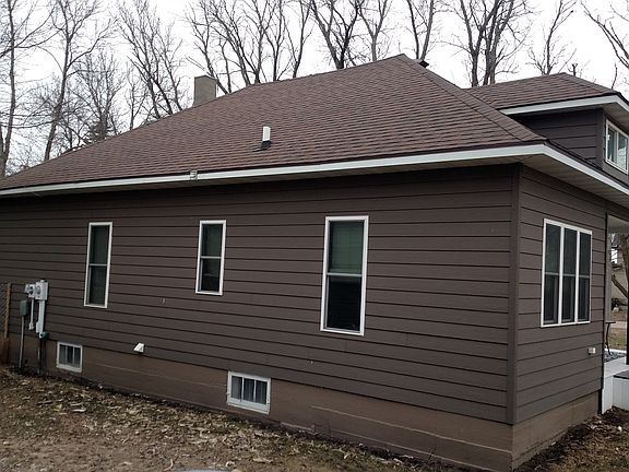 1 1/2 story bungalow 1050 sq ft., remodeled in 2011. Main floor kitchen, living room, 3/4 bathroom, 2 bedrooms and laundry. 2nd story has unfinished attic space that could be another bedroom. Unfinished basement, propane and electric heat, new windows, added insulation, new siding, new electrical, sump pump, new plumbing, new cabinets, original hardwood floors. Chain link fence, 1 stall detached garage, large yard. Very Neat and Clean!