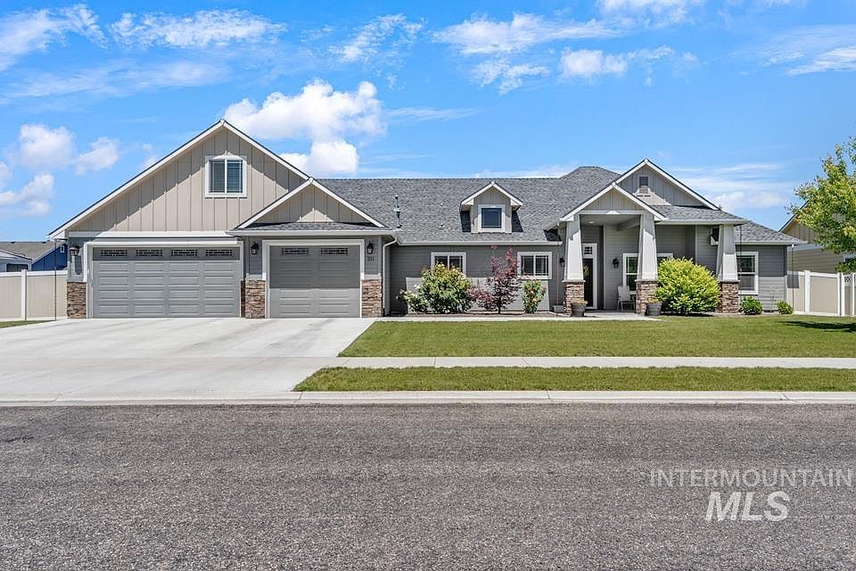 This gorgeous home is a spacious 2,539 sq feet with 4 bedrooms, 2.5 bathrooms, and built on two lots. That's 1/3 of an acre in the Pleasant Loop subdivision! This home features leathered granite counters, walk-in tiled master shower, an office, bonus room, dual vanities, solid wood cabinets, lots of light, open floor plan, 3 car garage, and so much more. Enjoy the covered patio in the fenced backyard, with lots of grass to play, and room for RV parking. Located close to NP schools, parks, and NP city center. Make 211 E Garret your new address!