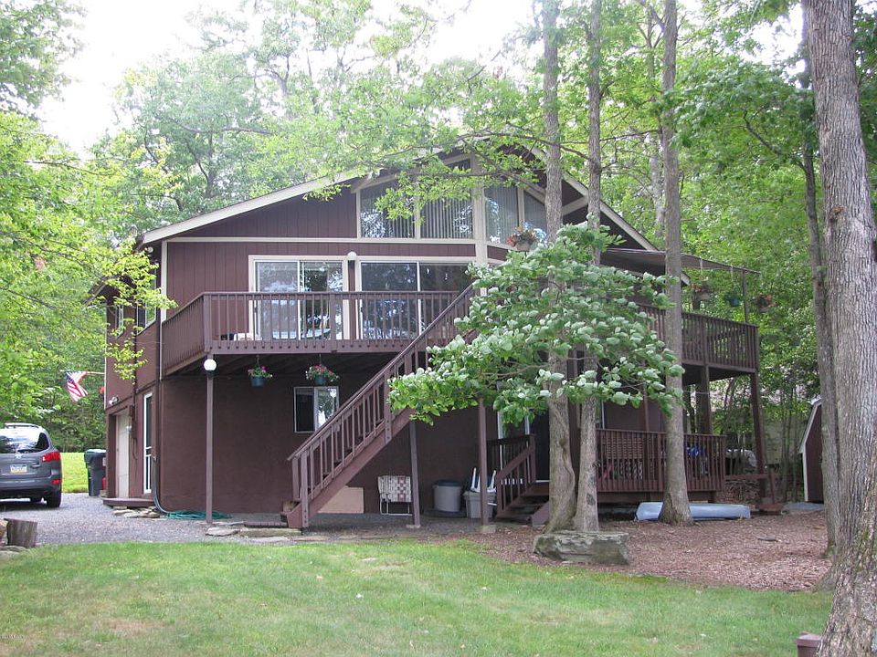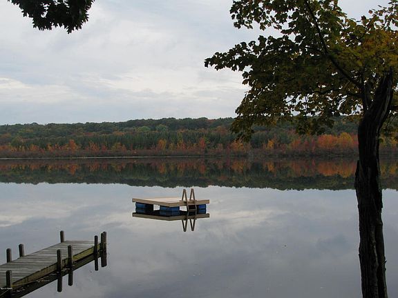 Lakefront - Sunset ViewsMove right in this well kept lakefront home and enjoy this summer! Enjoy spectacular lake views through living room's large windows or sitting on very large open deck with partial canopy. This 3 bedroom, 2 bath home features a 2 sided fireplace in living room and kitchen, large family room, garage and dock for boat and floating swimmers dock.