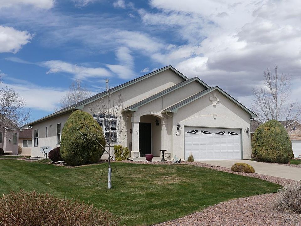 Lovely one owner patio home with a terrific location available now. Custom built with incredible oak cabinetry, including custom pantry, and more. Open, entertaining floorplan with 9 foot ceilings, bar area from kitchen open to living room with views of the fireplace. Large covered patio with mountain views off the back of the home, plus a quiet setting just to enjoy the wildlife that travels through. Huge master suite with a large picture window framing the mountain views that don't end! Comfy office space with large windows and plantation shutters. Main floor laundry space. Tile in main floor baths including to the ceiling in the step in shower. Double sinks in the master. All the yard work is done for you, including snow shoveling. Lock it and go!!! Basement has been finished with a neat wet bar area, large TV or game room, space for tables and seating, a hobby or craft room with sink that has been used as a darkroom, plus a large bedroom with office space in it, and two huge closets, next to the full bath. Convenient two car garage opens right to the kitchen with a skylight. Ready to downsize, but still need lots of storage and extra living space? This is it.