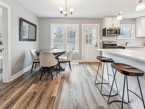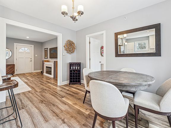 You can't beat the location of this newly renovated cape cod, located in the Village of Barrington. Steps to town and a short walk to the train, this 3 bedroom 2 bath home is ready for you. Newer white kitchen cabinets with stainless steel appliances and quartz countertops. Eat-in kitchen area. Neutral lament flooring and freshly painted throughout, carpet in the primary bedroom on the second floor, with full bath. 2 bedrooms and full bath on main floor. Basement is finished, spacious and updated with rough in plumbing for .5 bath. Front porch is enclosed and can be used year round. The backyard boasts a newer stone patio, fire pit, landscaping and garden which allows you to privately enjoy an outdoor entertaining space. Newer driveway, roof and new garage door. Don't miss this opportunity, best location in town.