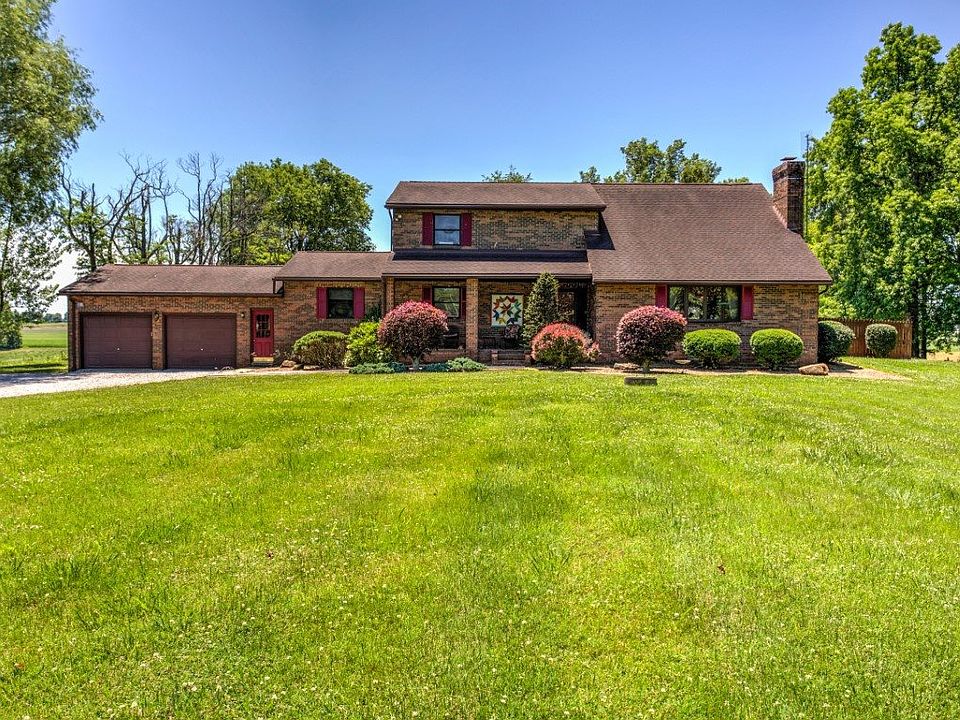 Roomy brick home on 2.5 acres close to the heart of Boonville and Scales lake recreational park with wonderful views of miles of rolling farmland.. Walk into this home and immediately see the large living/family room with 2 story vaulted ceilings, new luxury vinyl floors, and wood burning fireplace with brick hearth and accent wall. This room opens to the kitchen complete with breakfast bar and dining area. The kitchen opens to a large covered porch overlooking the inground 42' x 20' swimming pool and the rolling farmland. The first floor also has 3 nice bedrooms, a full bath, laundry room and 2.5 car garage. Upstairs is for the owner and has an extra large master bedroom, private bath with stand up shower, jetted tub and double vanities, the large walk in closet is just outside the door in the hall. Also, upstairs is a cool loft open to the family room below. There is a 2nd floor deck that spans the entire back of the house with access from master bedroom and loft, the views from this space are gorgeous! There is also a 30' x 40' pole barn with 1/2 concrete floored, and 1/2 gravel.