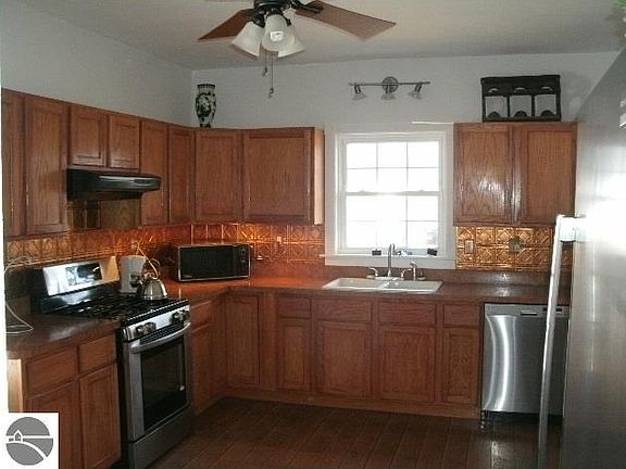 Updated 4 bedroom home walking distance to shopping and Lake Huron. Bathroom on each level. Newer HW heater, Breaker box and wiring, exterior doors, garage door, some new drywall. Large kitchen, living room and dining room, vinyl windows, bedroom on main level and 3 bedrooms on upper level with 7x13 full bathroom and sitting/computer area. 7x25 Enclosed front porch, full basement with new washer and dryer. Newer range, refrigerator and dishwasher included in sale. 20x28 garage with new OH door and attached 12x16 shop or storage area. Paved Drive.