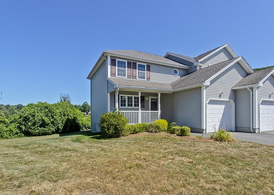 Rare offering! Beautiful Mountainview Condominiums. End unit townhouse facing the cul de sac. Nice open first floor with laminate throughout kitchen and living room, which has sliders leading out to a deck overlooking lots of green space and pretty views. There is also a half bath with laundry off the kitchen. The second floor features two spacious bedrooms with vaulted ceilings joined by a full bath. There is a finished basement family room for added living space. Cost effective living with gas heat and a low HOA fee, along with central air conditioning and a one car garage. What more could you ask for? Oh...how about being steps away from the Manhan Trail and minutes away from downtown Easthampton shops and restaurants? Don't hesitate because you won't find another condo with these features and in this price range in Easthampton!