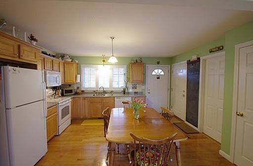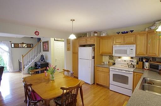 Excellently maintained unit in one of the best locations in the complexes! 2 bedrooms, 1. 5 bath, 1 car attached garage and a patio with plantings in the private back area of the unit. The first floor is open with eat-in-kitchen flowing into the living room. Hardwood floors grace the first floor and sliders open to the back patio. Two generously proportioned bedrooms upstairs with wall to wall carpet share a common bathroom in between that has a separate room for shower and toilet. Great natural light flows through the unit and the basement could be finished for more space. Propane heat, laundry in first floor bathroom and easy access right out your door to the bike bath!