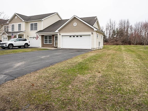 Enjoy a wide-open layout that allows for seamless flow between the living room, kitchen, and dining areas. This design is perfect for entertaining and everyday living. Two generously sized bedrooms provide ample space, ensuring comfort and privacy for you and your guests. The home features two full bathrooms. Relax by the gas fireplace on chilly evenings. An attached garage offers easy access and additional storage space. Step outside to your back patio, perfect for enjoying morning coffee or evening gatherings. Stay comfortable year-round with central air conditioning. Vaulted ceilings in the living room, kitchen, and dining room add a touch of elegance and enhance the spacious feel of the home.This townhouse offers the perfect blend of comfort, style, and convenience, making it an ideal place to call home. Don’t miss your chance to experience the best of Sackets Harbor living!
