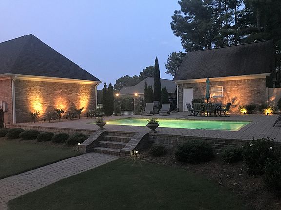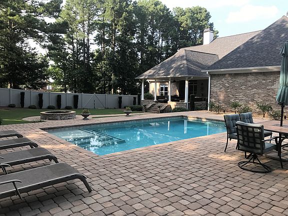 One of a kind custom-built, 4-sided brick ranch on one acre corner lot. 3 bed/ 2-1/2 bath, office, move-in ready home features tons of upgrades including gorgeous outdoor living area w/ a 22 x 24 covered stone patio, luxurious saltwater pool & private backyard. Open floor plan w/ 11 foot coffered ceiling in great room, split bedroom plan, beautiful hardwood floors throughout, large kitchen with walk-in pantry, plenty of cabinets, stainless appliances. Huge master suite features double tray lighted ceiling, separate his & hers walk-in closets, & recently upgraded master bathroom w/ quartz double-sink vanity, oversized frameless shower w/marble mosaic & subway tile. 2 & 1/2 car attached garage plus a separate 2-car detached garage. Conveniently located to interstate & shopping in a quiet and established neighborhood. Standard commission for buyers agent. Speaker system throughout the house.