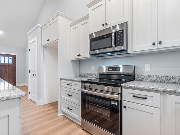 Welcome to your new home! This 4-bedroom, 2-bath brick beauty is full of charm, style, and personality. From the moment you pull up on the concrete driveway, you’ll notice the black accents, lush landscaping, and all the little details that give this home its curb appeal. Step inside and be greeted by a large living room with vaulted ceilings and plenty of natural light that makes the living room feel bright and cheerful. The heart of the home—the kitchen—is ready for everything from weeknight dinners to weekend get-togethers, featuring white cabinets, granite countertops, stainless steel appliances, a pantry, and modern light fixtures. Your master suite is a dream, complete with a tray ceiling, double granite sinks, a tile shower, and a walk-in closet big enough for all your favorite things. Three more bedrooms give you tons of flexibility—office, guest rooms, or even a hobby space—and one has its own vaulted ceiling for extra flair. The second bathroom keeps the granite trend going, and is perfect for kids and guests to use. LVP flooring runs throughout the home for easy living, and the encapsulated crawlspace keeps things low-maintenance. Outside, kick back on the covered porch, fire up the grill, or just relax and enjoy the yard. A 2-car garage makes life easy while keeping things looking sharp. This home is full of style and comfort—ready for your next chapter! The builder is offering a $5K builder incentive towards buyer prepaids and closing costs with an acceptable offer.