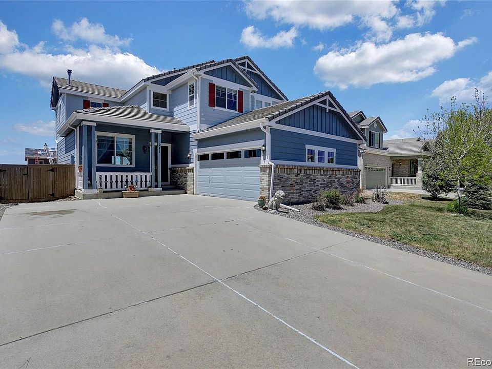 Enjoy gorgeous Mountain Views in this cozy 5 bed, 3 bath stunning home located in desirable Castlewood Ranch. This home has a wonderful floor plan with lots of natural light and vaulted ceilings. The main level consists of a formal living room with an open concept kitchen, eating nook, large family room, full bath, and bedroom complete with built-in shelving that can also serve as a main floor office. Very functional kitchen with solid surface countertops, center island, and full appliance suite. Enjoy the great western view from the kitchen window. Access to a very spacious, fenced, landscaped, and usable backyard is just off the kitchen nook. Continue to enjoy mountain views from upstairs where there are 4 bedrooms, 2 baths and a super convenient laundry room with cabinets and a window. The master bedroom includes 2 spacious walk-in closets and an en-suite 5-piece bath. There is a full unfinished garden-level basement (basements rare in this neighborhood) ready to be finished for added living area. The over-sized 2 car attached garage has ample space to accommodate toys and a large work area. Original owners! An added benefit is the short distance to the elementary and middle schools and extensive trail system that lead to nearly 6 parks. The backside of Castlewood Canyon meets the edge of this community with beautiful views and wildlife. Only 8 minutes to I-25 and minutes to local amenities, dining, and shopping. BE SURE TO VIEW THE 3D VIRTUAL TOUR!