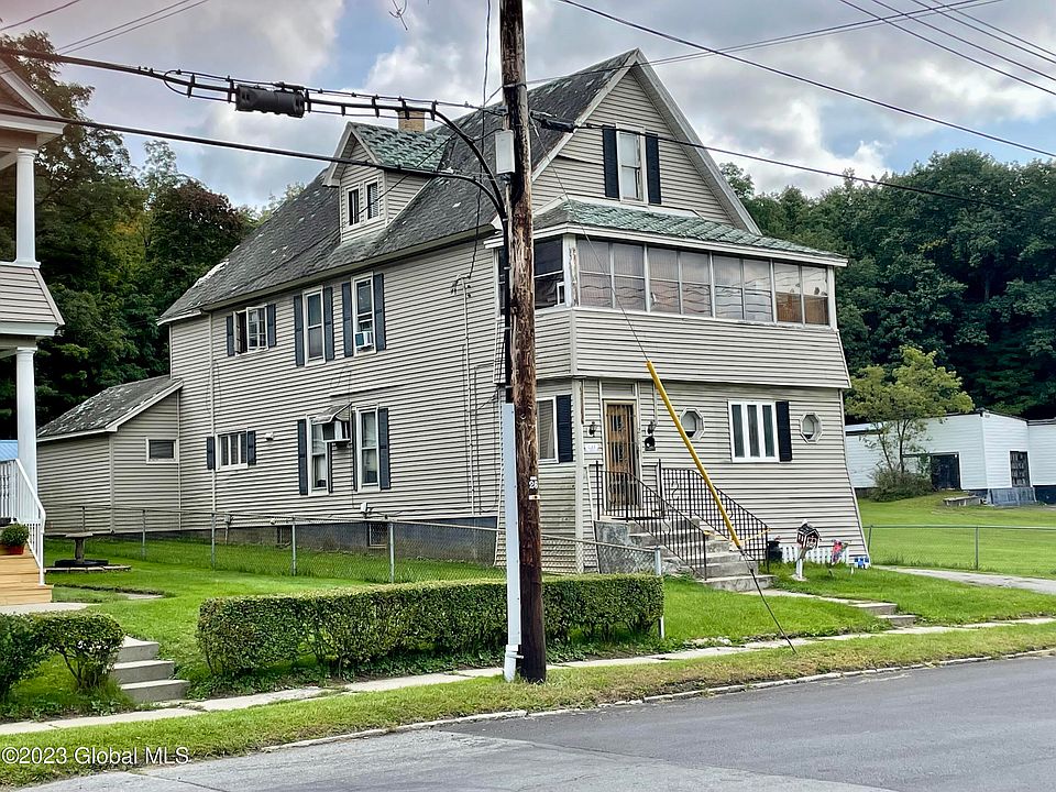 Two-family home located in the heart of Amsterdam. The first apartment offers three large bedrooms, kitchen, living room, and full bathroom. The second floor offers two bedrooms, kitchen living room, full bath enclosed front porch. Two-car garage generous yard with fire pit. Close to Chuctanunda creek and bus route. Home needs some TLC and is reflected in the price.
