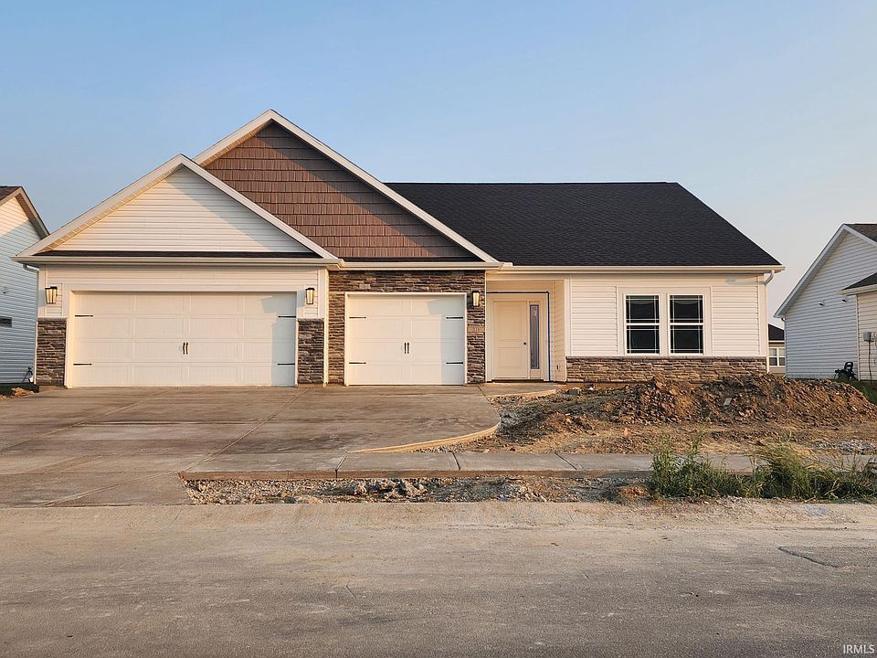 Brand new construction 1,887 square foot home features 3 bedrooms and 2 full baths, a covered patio, and is located in West Lafayette's Auburn Meadows. Home features 9' ceilings, an open and split bedroom floor plan with natural light pouring in through a wall of large floor to ceiling windows with transoms, a corner gas fireplace as a focal point in the great room, a large open patio for outdoor entertaining, vinyl plank flooring in the living areas, and a spacious three car garage with laundry room and mud bench access upon entry. Kitchen features include custom staggered cabinetry with crown molding, a large island with seating, stainless steel appliances, granite countertops, ceramic subway tile backsplash, and a large walk-in pantry with custom shelving. The primary bedroom features a large ceramic tile walk-in shower, dual sink vanity, and an ample California style walk-in closet with convenient access to laundry room. Home includes a warranty and is fully landscaped. Conveniently located about a mile to the local elementary, middle, and high schools. Also situated within easy access to various shops, restaurants, parks, the new wellness center, Purdue University, I65, and US 52. All offers must be transferred to a Builder's Agreement.
