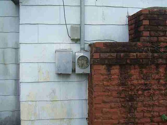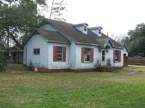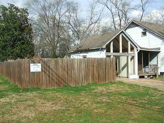 Exterior Features:House is on good size corner lot, with wood picket fence and chain link over part. Siding is in need of cleaning and repainting. Roof is an asphalt style and needs to be repair, possibly replaced entirely. Detached car port that needs repairs. There is a small porch in the rear. Interior Features:This is a 3 bedroom 2 bath house with a large den. Hardwood floors in living room, downstairs bed rooms, hall way and dining room. Paint has been spilled on dining room and living room floors. Linoleum in utility room and bathroom needs to be replaced. Upstairs ceiling is badly damaged. Den has a fire log fireplace. Den floor is carpeted in need of replacing. Kitchen cabinets are in fair condition.