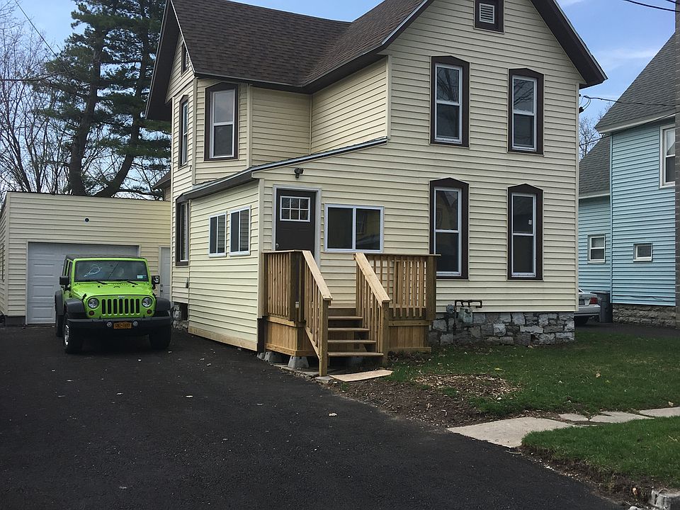 Just putting on the finishing touches and it should be done in a few weeks! This house was basically taken to the shell and everything was done new and to code. We have pictures of the whole process from start to finish. It is a 3 bedroom, 2 full bath house right in the city of Watertown in a nice area. There is a full wall fireplace in the living room, very large kitchen with brand new stainless steel appliances, attached garage and a porch/mud room. There are bamboo hardwood floors throughout except the bathrooms and kitchen. There is a new hot water heater, new high efficiency furnace (including duct work) paved driveway and a brand new roof. The neighbors are great. More pics to come but I promise you the downstairs is even more awesome than the upstairs. If interested in a showing please call 315-408-0309.