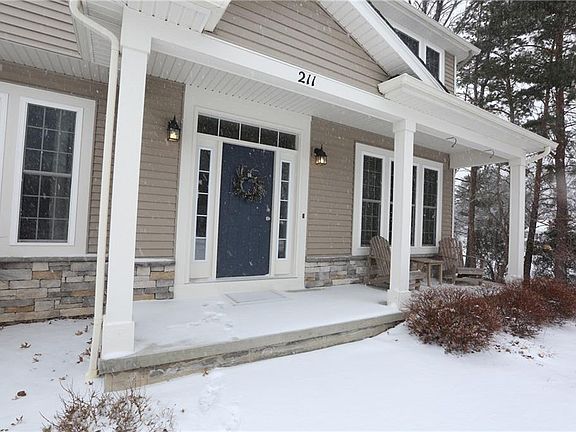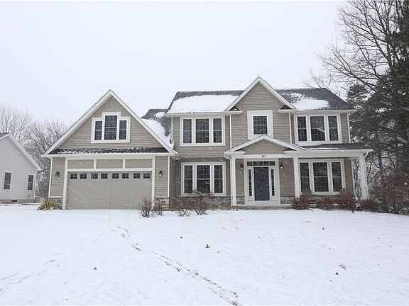 Welcome to 211 Gallant Fox Ln located in popular Lake Breeze Estates! A Showstopper! This Ceracchi Build offers 4 Bedrooms, 2.5 Bathrooms, 1st Floor Laundry, and a 2nd Floor Bonus Room that can also be deemed a 5th bedroom. This Colonial will meet all your standards plus some! NEW H20 Tank, Custom Built-ins in Living Room, Wine Bar in Eat-in Kitchen, Lower Walk out to Garage, and Roughed in plumbing in the Basement. Crown Molding throughout, Granite Counters, Tile Backsplash, Tray Ceiling in Dining Room, and Office on main level. Wake up to your tile walk in shower with rainfall showerhead or soak in your jetted tub. Enjoy being close to Lake Ontario, Hedges, and Webster Parks. Outdoor Patio offers beautiful hardscape with hottub hook up and firepit. Come take a look at your next home!