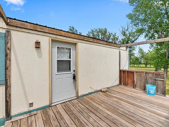 Call or Text Listing Agent - Rylan Richards - The Real Estate Center of Spearfish at 605-639-1918, Jason Richards - 605-381-1087, or Nellie Krueger - 605-645-7473 for more information. Manufactured home on great corner with 5 Lots in Vale! The home features 2 bedrooms, 1.5 baths, and a large living room with a Blaze King wood-burning stove. This is a great lot with mature trees and a few small outbuildings. Axels are underneath of the home as well as the hitch. Property is being sold "as is". The property has city sewer and water services. A letter of fund availability is required prior to viewing the home. Buyer is responsible for verifying all information on this MLS document.