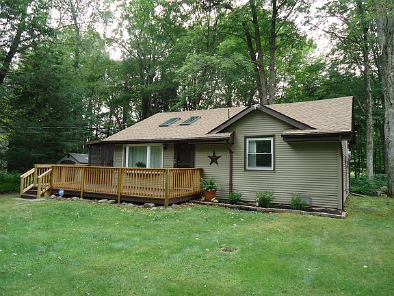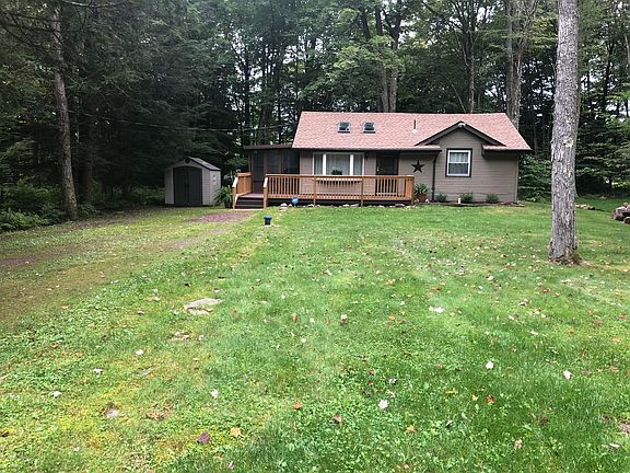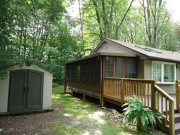 An investment opportunity to own your piece of the Poconos! This charming 3-bedroom,1-bath ''furnished vacation'' home is located in the wonderful peaceful lake community of Greeenwood Acres, where residents enjoy the private lake, beach and playground! This home has a new roof and has custom tile work in the kitchen and bathroom. New skylights provide plenty of sunlight. Freshly painted oversized front deck and oversized screened porch to enjoy all year around. All of this on a flat cleared lot with just enough trees for privacy! Home has an ADT alarm system, is within walking distance to the Thomas Darling Preserve, and is near many major Pocono attractions. Do not wait, schedule your showing today!