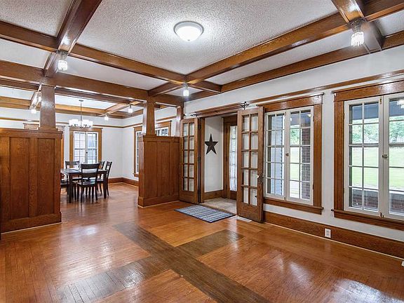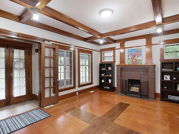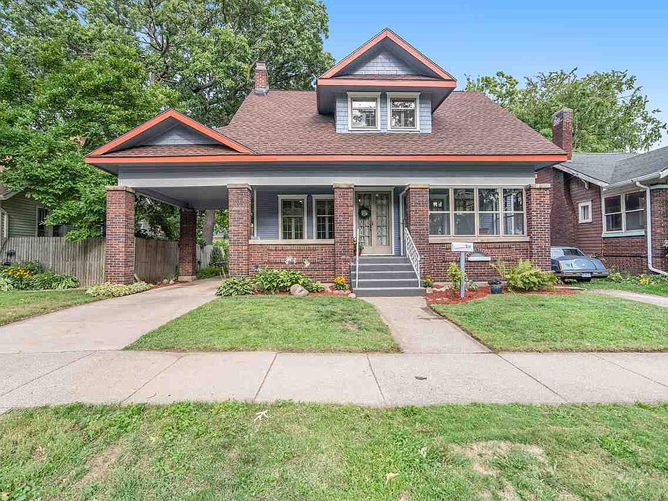 Sears and Roebuck, full brick Bungalow. Enjoy the sunsets from the enclosed front porch w/ ceiling fan & swing or the open front covered patio, both overlooking Loomis Park. This home is the definition of character & pride in home-ownership!! Through the front original hardwood french doors leads you to the warm living room with fireplace, formal dining w/ high end custom hardwood trim & built-ins. Main floor bedroom, updated kitchen w/ new appliances, full bathroom. Upstairs there are 2 additional large bedrooms w/ large closets & 2nd full bathroom. In the basement you will find the clean laundry room, large 4th bedroom, den/5th bedrm & storage/ utility area. Enjoy your evenings in the private fenced back yard or on the sprawling cement driveway/ patio area/ garden area. Fall in love with the charm of the covered carport approach to the detached 2+ car garage with cement floor, electric & lots of additional storage.