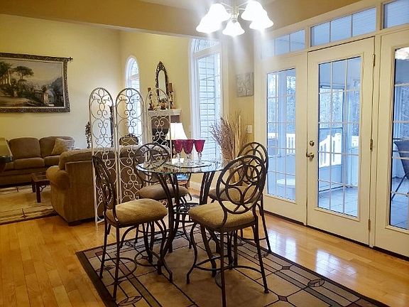 Custom built home with 5 Bds, 4 Ba sitting on 2.64 acres offering an open floor plan w/ beautiful hardwood flooring throughout.This home includes 13' vaulted ceilings w/fireplace in living room, Kraftmaid cabinets (natural cherry), solid surface counters, serving bar in kitchen, breakfast area w/ view of wooded backyard, formal dining room, walk-in attic w/lots of storage, gorgeous screened porch, concrete back porch off the master that includes suite and walk-in closet. 2 car garage w/storage.