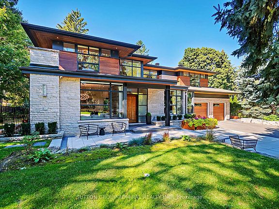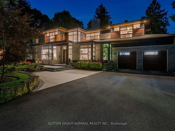 An extraordinary architectural triumph by renowned designer David Small, this Mineola masterpiece represents the pinnacle of modern luxury living. Nestled on prestigious Glenview Drive near Hurontario/Mineola, this 100' wide lot offers approximately 7,360 square feet of meticulously crafted space featuring glass floating staircase, designer chandeliers,stone accent walls, and two built-in gas fireplaces creating sophisticated ambiance throughout.Over $1,000,000 in curated upgrades include a professionally designed backyard oasis with salt water pool featuring new Pool werx liner, premium Permacon pavers, custom cabana,four-season hot tub, and AstroTurf putting green. The outdoor chef's kitchen with built-in gas BBQ and covered patio featuring custom privacy screens and integrated speakers creates the ultimate entertainment space.The gourmet kitchen showcases full-height backsplash, premium The rmador and Samsung refrigeration, Bosch dishwashers, Dacor double wall ovens, cook top, microwave, professional stainless hood, Marvel ice maker, and Miele built-in coffee system. Designer light fixtures illuminate every space, while double barn tinted glass doors lead to the private den.This exceptional 4+1 bedroom, 5 bathroom residence features a rare main-floor primary suite with dream walk-in closet. Luxurious TOTO bidet toilets and steam showers elevate the spa-like bathrooms. The finished walk-out lower level offers a fully equipped large gym, recreation room, second kitchen, custom theatre, designer wet bar, and humidity-controlled 1,000-bottle wine cellar. With separate entrance, the lower level functions as an independent dwelling.State-of-the-art Control 4 smart home system provides effortless control throughout this turnkey masterpiece. Minutes to QEW/427. Access to Sherway Gardens.