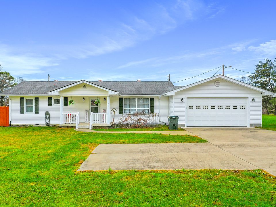 Welcome to this charming 3-bedroom, 2-bathroom home nestled in the sought-after Golden Eagle Estates community! Conveniently located between London and Corbin, this property boasts a spacious half-acre fenced-in lot, perfect for outdoor activities and privacy. Step inside to discover a bright and airy open floor plan where the living room and kitchen flow seamlessly together. The living room is a cozy retreat featuring a large bay window that fills the space with natural light and a custom electric fireplace for those chilly evenings. The kitchen has been thoughtfully updated with ample counter space and includes all kitchen appliances. A convenient eat-in dining area opens to the backyard through sliding glass doors. The primary suite offers a private escape with two closets and an en-suite bath. Two additional bedrooms, a full bath, and a laundry room complete the home. With an oversized garage for all your storage needs, this property is the perfect combination of comfort and functionality. Don't miss your chance to call this home yours—schedule your showing today!