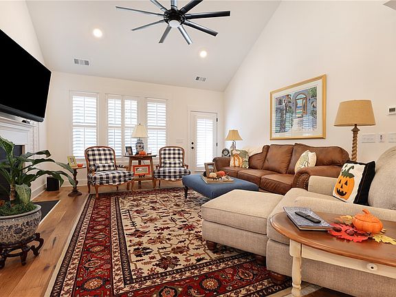 - Ceiling Fan(s), Cathedral Ceiling(s), Entrance Foyer, Fireplace, Granite Counters, High Ceilings, Bath in Primary Bedroom, Main Level Primary, Shutters, Walk-In Closet(s), Walk-In Shower, Loft