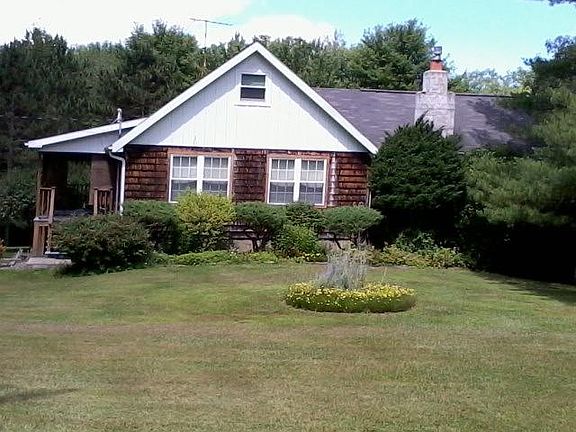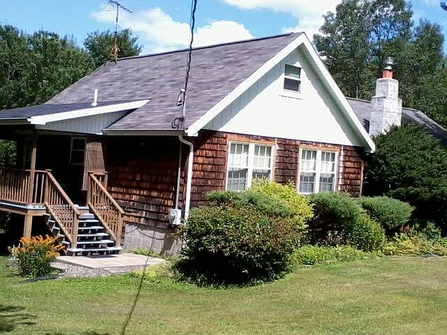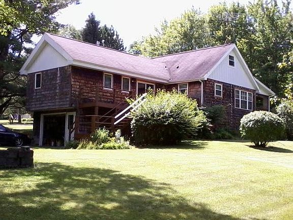 Country living w/4 BR - 2 full baths - one bath is updated - rear roof replaced 2015 - family room with cathedral beamed ceiling & stone fireplace - gas heated - walk in closets - 2 decks - eat in kitchen - well pump is newer. Enjoy sitting on your covered porch in your private peaceful setting. A MUST SEE !!