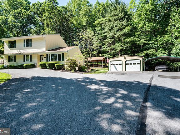 You will not want to miss out on this 5-bedroom, 3 full bathroom home with a two-car detached garage with electric, carport, and a finished lower level, on just over 2 acres with a pavilion! Plenty of parking to be found on the large, half circle, asphalt driveway! Enter through the front door into the spacious living room with tile flooring, bay window, and open entry to the 26-handle kitchen. The kitchen is equipped with electric cooking, ceiling fan, stainless sink, and access door to rear covered porch and large, covered pavilion. The main floor offers 3 spacious bedrooms and two full bathrooms, one offering laundry hookups! The second-floor addition offers two additional bedrooms, one a massive 27x12 primary bedroom with two standard closets and a walk-in, with private bathroom entrance. The full bath offers a jetted whirlpool tub and walk-in shower, as well as an access door from the hallway. As if this wasn’t enough, the finished lower level provides a huge 23x23 family room with dry bar and freestanding propane stove. There is also a small room roughed in for a ½ bath and a basement ventilator system installed to take humidity out. The basement additionally offers several storage/utility rooms. Home is roughed in for a generator. Call today to schedule your private showing of this beautiful home!