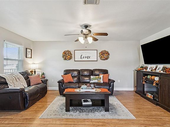 This adorable 3-bedroom, 2-bath home has been lovingly maintained and thoughtfully updated, offering both comfort and peace of mind. Step inside to find a bright and welcoming living area with an easy flow into the kitchen and dining spaces. The home features no carpet throughout, making it both stylish and low-maintenance. The spacious primary suite includes dual vanities, a walk-in shower and soaker tub! Recent upgrades include new windows, and functional storm shutters installed in 2024, a new roof 2021, ensuring long-term durability and added security. Outside, enjoy a covered patio/carport area that’s perfect for entertaining, along with a fully fenced yard and utility shed for extra storage. The home’s curb appeal shines with brick and iron accents on the exterior and a cozy front porch. Located in an X flood zone, move-in ready and full of charm—don’t miss this one!
