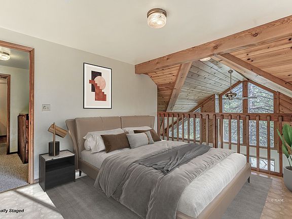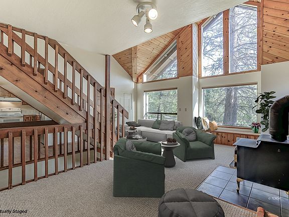 Two bedroom, two bathroom home nestled in a serene neighborhood in the heart of town. Enjoy sounds of nature and views of mountains. Living room with cathedral ceilings and views overlooking town. The kitchen is open to dining room with a breakfast bar, good storage and an additional pantry. Bedroom and bath complete the main level. The primary bedroom is located upstairs complete with walk in closets and a bathroom. A two car garage with access to lower laundry room, main level, and back yard. The backyard is quiet and peaceful and has outdoor structures for storage. Built by Geoffrey Armstrong. If you want to be whisked away to nature but enjoy the services and locale that town life has to offer, this is worth a visit.