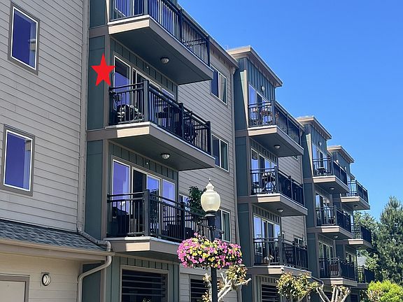 Enjoy river views from this 3rd floor, east facing condo at desired North Bay Condos. This is one of the largest 1 bedroom, 1.5 bath units. This unit has its own parking space in the secured parking garage. Elevator makes for easy accessibility. The gourmet kitchen has upgraded appliances including an induction range and granite counters, open to large living area with a slider to the balcony. The primary bedroom has double closets, bath with shower and jetted tub. Nice sized laundry with extra storage. This unit comes mostly furnished. WiFi and cable are included in HOA fees. This is a non-smoking facility.  Easy to show! Just call for codes