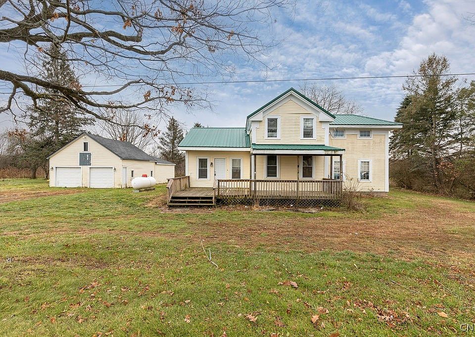 MULTIPLE OFFERS RECEIVED. SELLER IS REQUESTING BEST AND FINAL OFFERS FROM ALL PARTIES BY FRIDAY 11/28/25 AT 3:00PM. Tremendous potential and opportunity for investor or owner occupant - 4 bedroom 2 full bathroom 2,080 sq ft home, situated on a 1.92 acre lot with detached garage. Open floor plan with large kitchen featuring island/breakfast bar. Cathedral ceiling in second floor primary bedroom, with door to balcony overlooking the private setting. Detached garage gives great space for storage or a workshop with 3 overhead doors. Decks on front and back of house, with portion of deck covered on front of house - yields plenty of space to entertain. Don't miss out on this opportunity to turn this home around and capitalize on its potential. Convenience of first floor laundry hookups. Location makes for manageable commute to Syracuse or Oswego. Property being sold "as is where is."