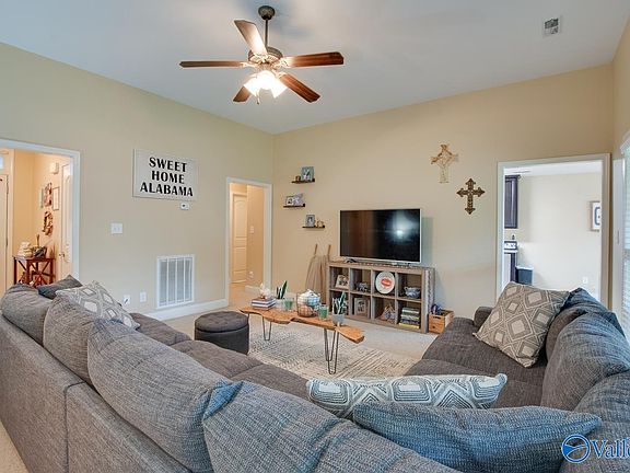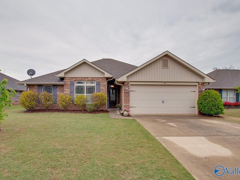 Wonderful rancher in Madison. Great schools! Easy access to I-565. Only 15 minutes from Research Park and Redstone. Full brick w/vinyl low maintenance. Updated features: High smooth ceilings, ceramic tile flooring, GRANITE counters, ceiling fans. 3 bedroom, 2 full baths, 2-car garage. Foyer w/tile & coat closet. Isolated Master Suite has high trey ceilings, ceiling fan, walk-in closet, ensuite bath with separate shower & whirlpool tub. Kitchen w/granite, energy star SS appliances, pantry and all appliances. Breakfast Rm looks out over back yard. Separate Laundry Room! Enjoy the large back yard from the covered patio. Privacy FENCED back yard.