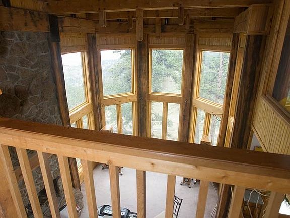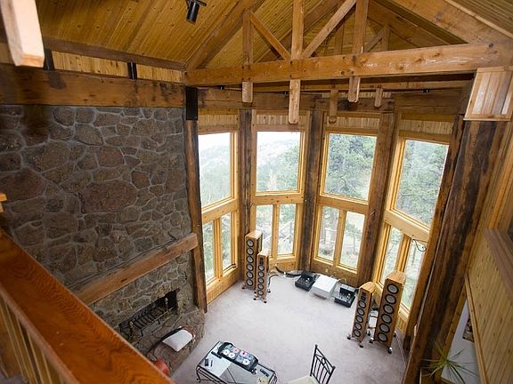 Three stories of impressive architecture. Many, many windows bring the light and views inside. Architect built the Dan Fogelberg house and many mansions in Aspen. Very quiet. Very private. 6.5 acres. Just 6 minutes to Broadway, 12 minutes to the Pearl Street Mall. If you are coming from Silicon Valley, Pinebrook Hills is like the Woodside of Boulder. Walls of windows. Views of Boulder, Downtown Denver, Niwot, Lafayette, and back range. 12 18" wide beams from historic Denver warehouse were used to frame the 24' tall living & family rooms. Huge natural rock fireplace. Gourmet kitchen w/ cherry cabinetry, slab granite, 48" Sub Zero refrigerator, Wolf cook top, Dacor double oven. Spacious master bath w/jetted tub encased in marble, in-floor heat in all 3 bathrooms. Newer Trane furnace, two 40 gallon hot water heaters with humidifiers. Newer A/C. Large Brazilian Ipe deck overlooks woods and city of Boulder. Wonderful city lights at night! Wonderful sunrises turn Boulder's lakes pink. Master Bath with views of much of Boulder from the shower. Master bedroom also has views, even lying in bed, of much of Boulder and Denver. Hang out in the living room and watch clouds float over Boulder and the hawks soar majestically above the trees. Watch fireworks of about a dozen fair grounds and stadiums on the 4th of July.